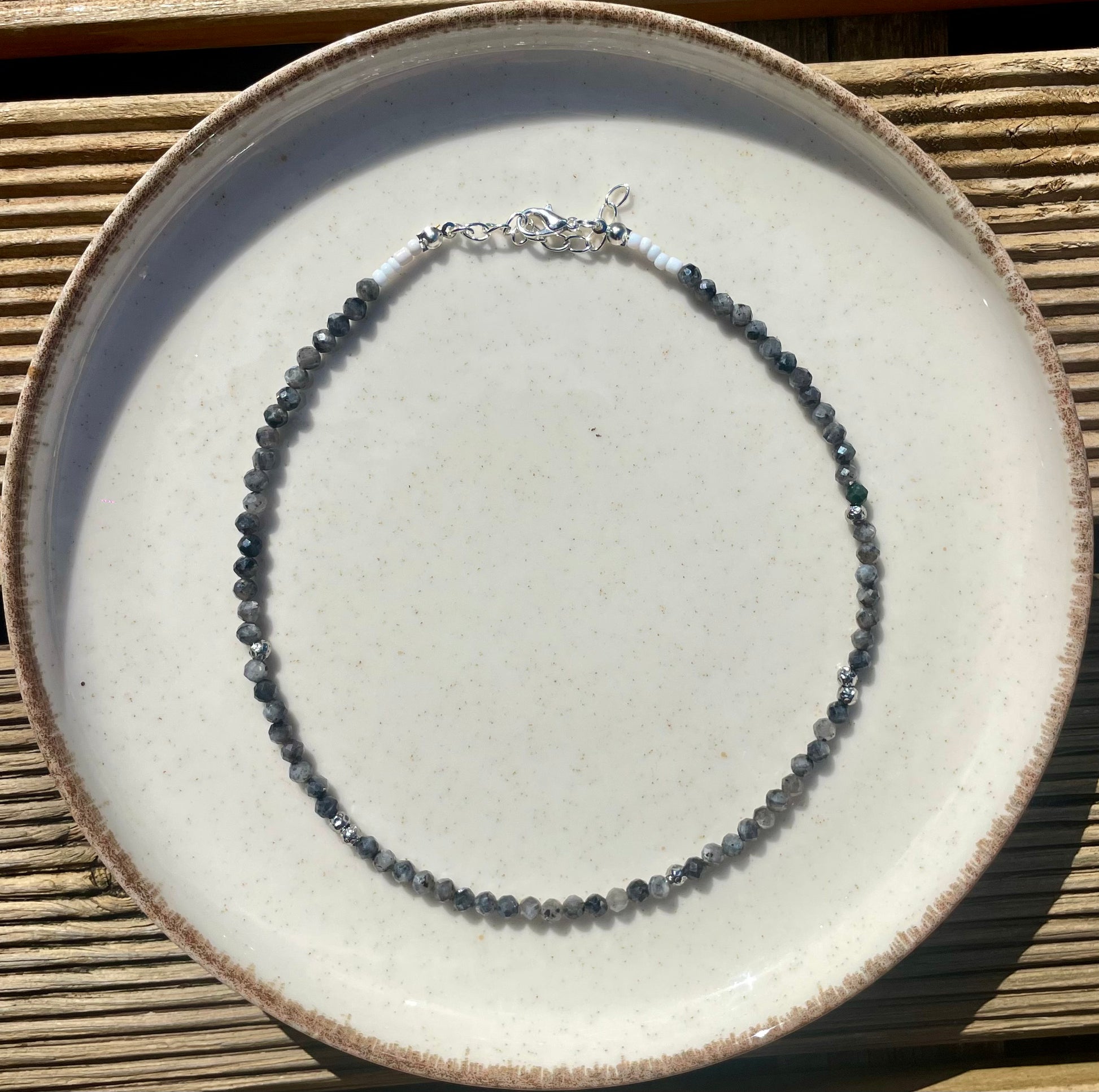 Ces colliers ras de cou sont réalisés par mes soins avec un câble et un fermoir en acier inoxydable. Ornés de pierres semi-précieuses et de perles en acier inoxydable, ils pourront vous accompagner partout.